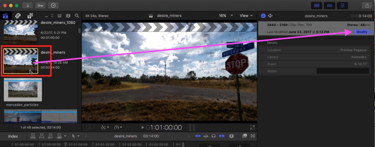 As a workflow, I would recommend rendering your video/animation from Final Cut X. Your project should be configured as full DCI 4K. That's 4096 x 2160 pixels, 23.98 (24) fps, remember? If it's not, select your project and then, click the Modify button to change it.